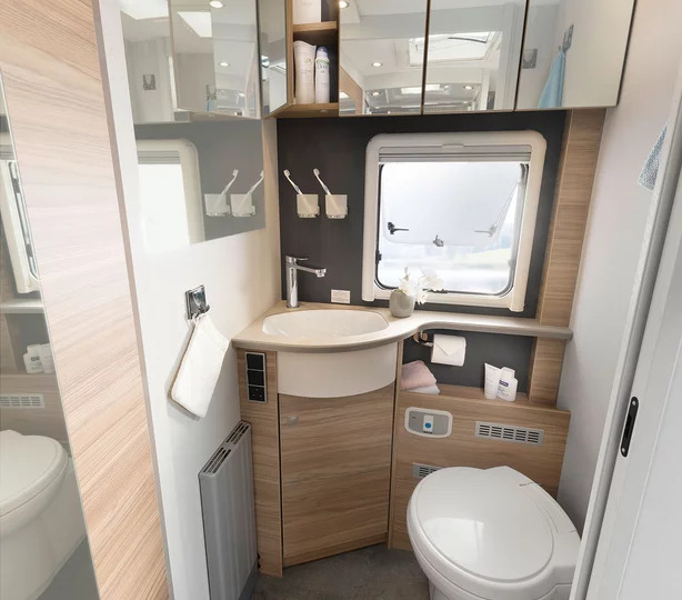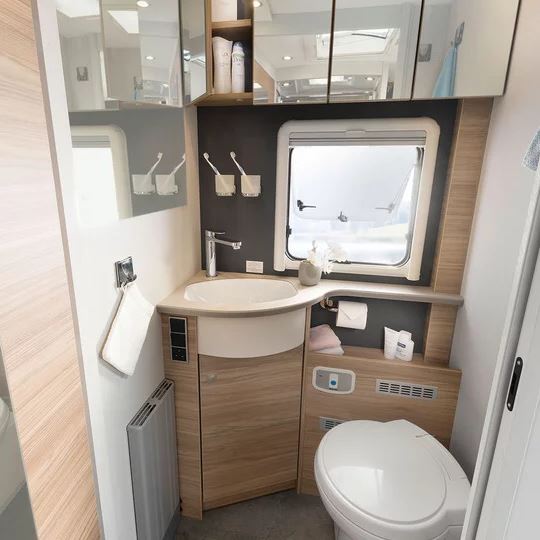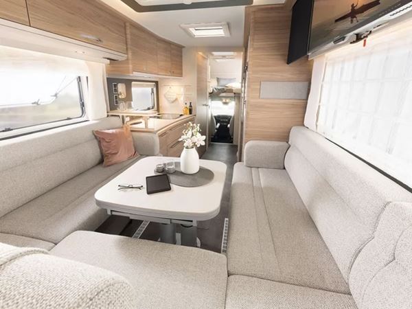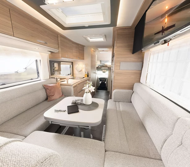 De camper voor samen reizende stellen. Met royale ruimteverhoudingen, enorme panoramazitgroep en comfortabele eenpersoonsbedden in het hefbed is deze camper uitstekend geschikt voor comfortabel reizen met z'n tweeën. En dat ook bij ijzige temperaturen, want de verwarmde dubbele bodem met vorstvrije waterinstallatie maakt hem absoluut wintervast. • A/I 7820-2 | Samir