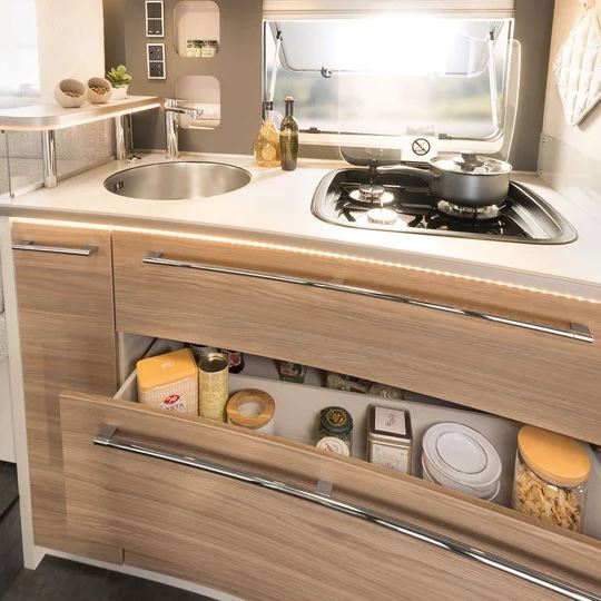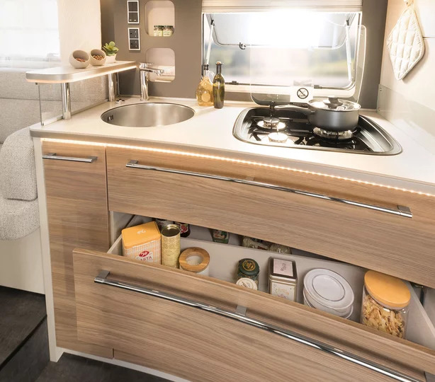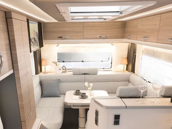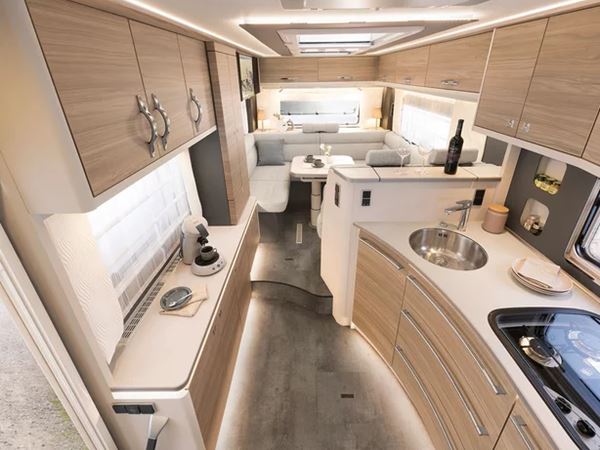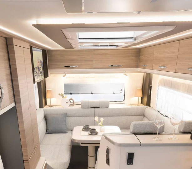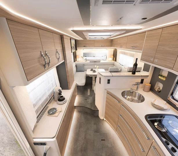 Ook de kortere Alpa schittert met een enorme zitgroep en veel ruimte en bewegingsvrijheid. Een bijzonderheid van elke Alpa: de royale bewegingsvrijheid voor de keuken. • A 6820-2 | Samir