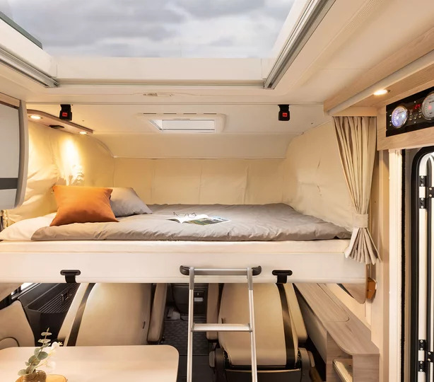 Het hefbed in de geïntegreerde modellen biedt een royaal ligoppervlak met een breedte van 150 cm