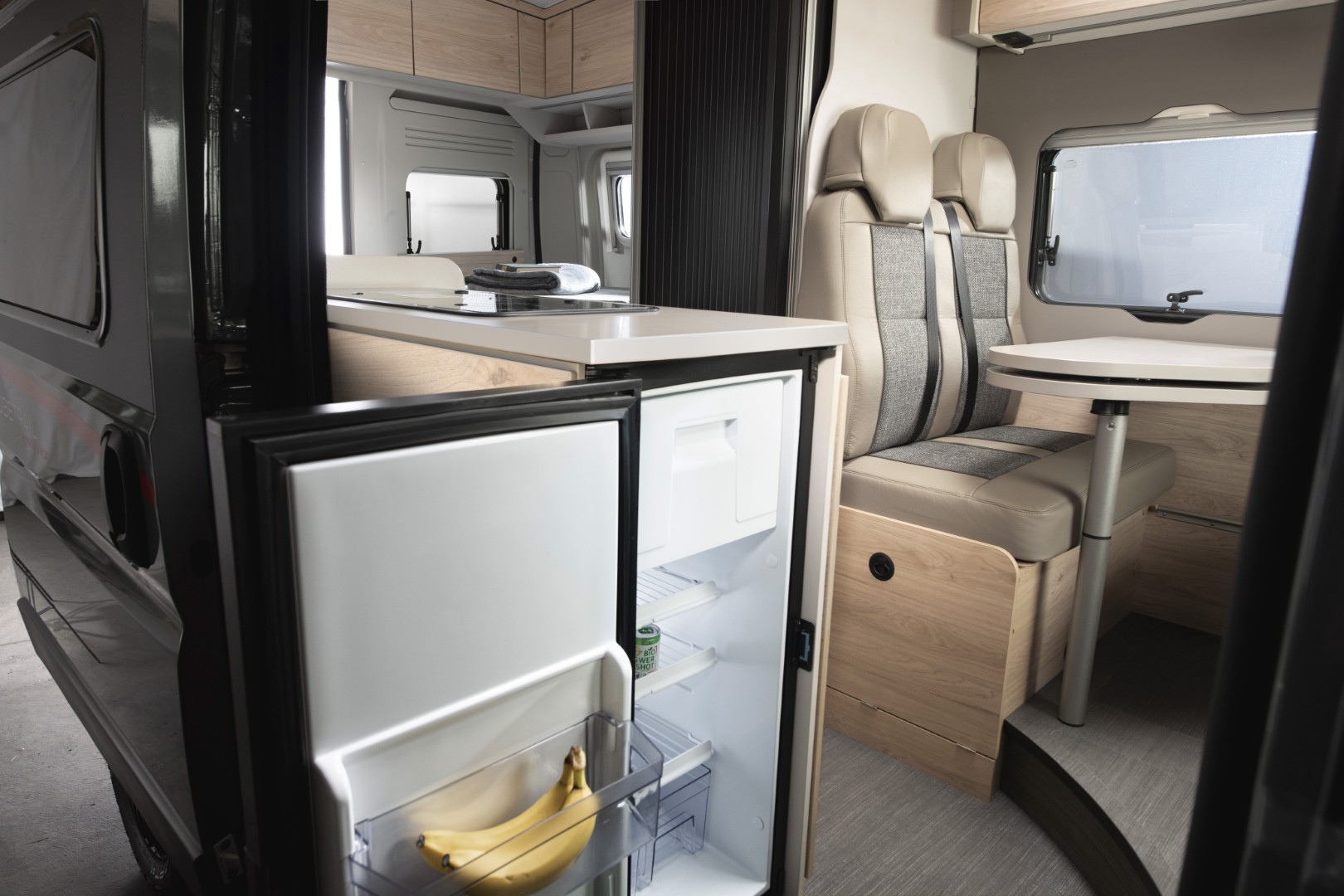 Koken (bijna) net als thuis. Ruimte en oppervlakte optimaal benut. De grote koelkast is dankzij een deur met een openingshoek van 180 graden zowel van buiten als van binnen goed bereikbaar.