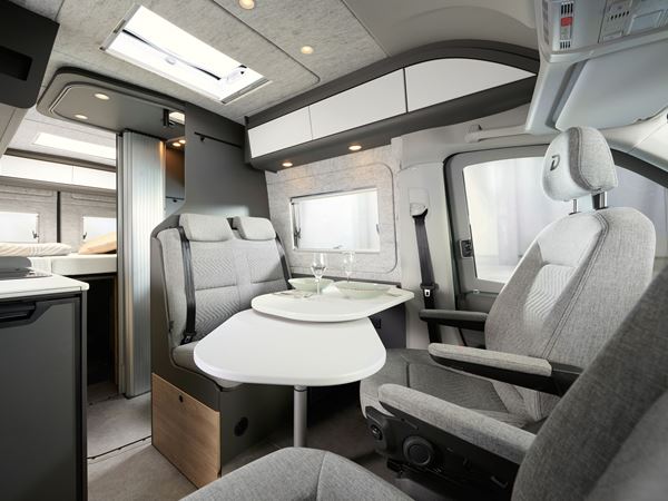 Bij de zitbanken kan de helling van de leuning ingesteld worden voor heerlijk zit-en reiscomfort. De textiele wandbekleding in het voertuig creëert een aangename sfeer, is geluidsisolerend en ademend.