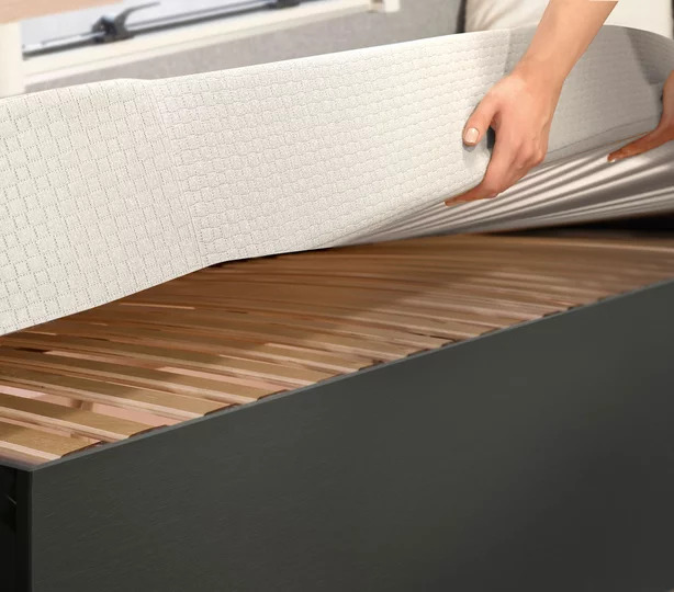 In de Trend worden 150 mm dikke premium koudschuimmatrassen van klimaatregulerend materiaal gebruikt. De lattenbodems van hout ondersteunen het lichaam optimaal en zorgen voor een goede ventilatie.
