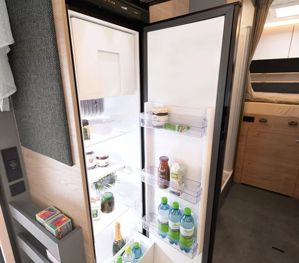De hoog geplaatste koelkast heeft een volume van 137 l, incl. een vriesvak van 15 l. Bijzonder comfortabel is de AES-functie: deze schakelt automatisch over naar de optimale energievoorziening.