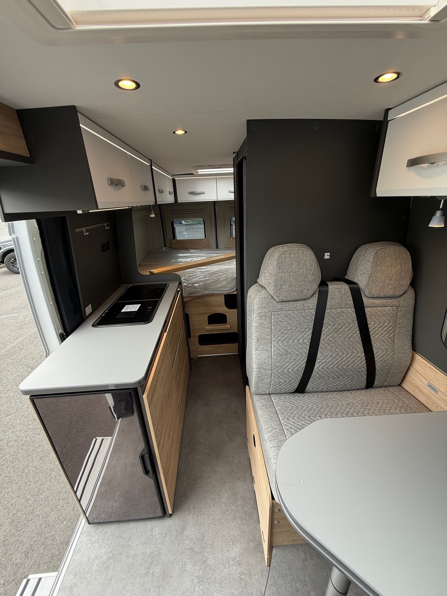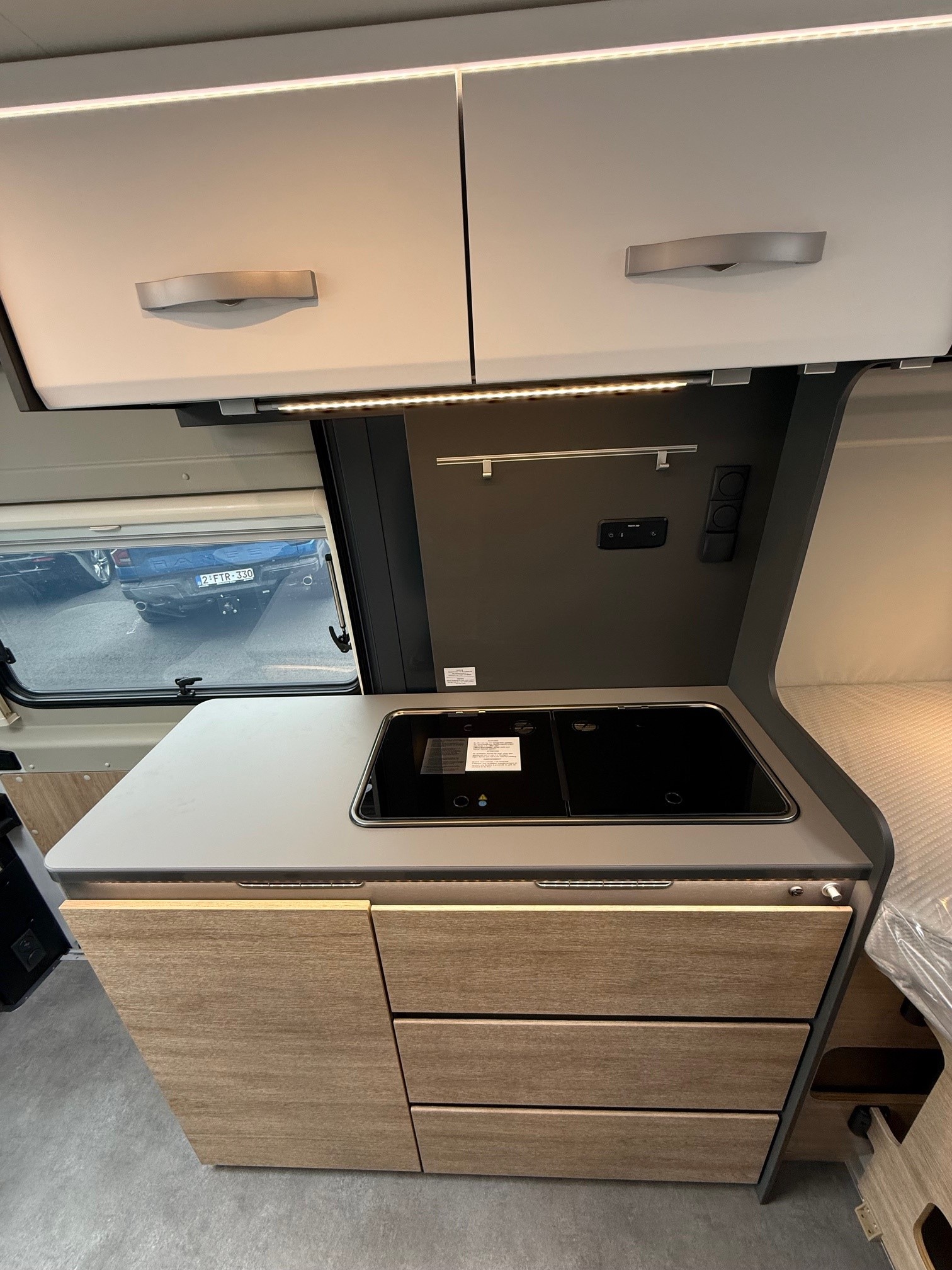 • Elektropakket: Extra dubbel USB stopcontact vooraan links, 12V stopcontact achterin, links onder, 230V stopcontact in bovenkast, linksvoor (zitgroep), Indirecte verlichting, LED verlichtingsrail in de keuken, Voorbereiding solarmodule