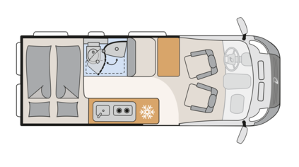 - Elektropakket: Extra dubbel USB stopcontact vooraan links, 12V stopcontact achterin, links onder, 230V stopcontact in bovenkast, linksvoor (zitgroep), Indirecte verlichting, LED verlichtingsrail in de keuken, Voorbereiding solarmodule
