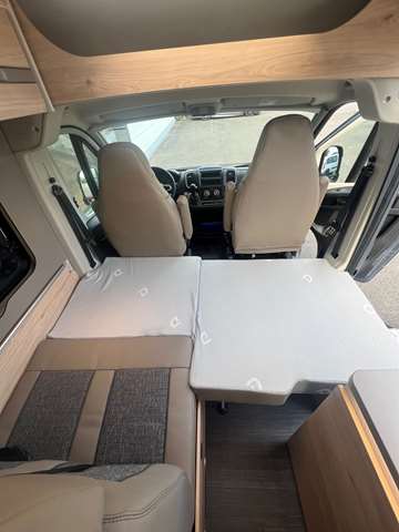 - Comfortpakket: Inlegramen, Raam met combirollo links achter, Luifel 3,75 m, Innovatieve, uittrekbare kast onder het bed, Gefestoneerd tapijt op vloerverhoging, los bijgelegd, Buitenlamp, Draaibare tafelbladverlenging