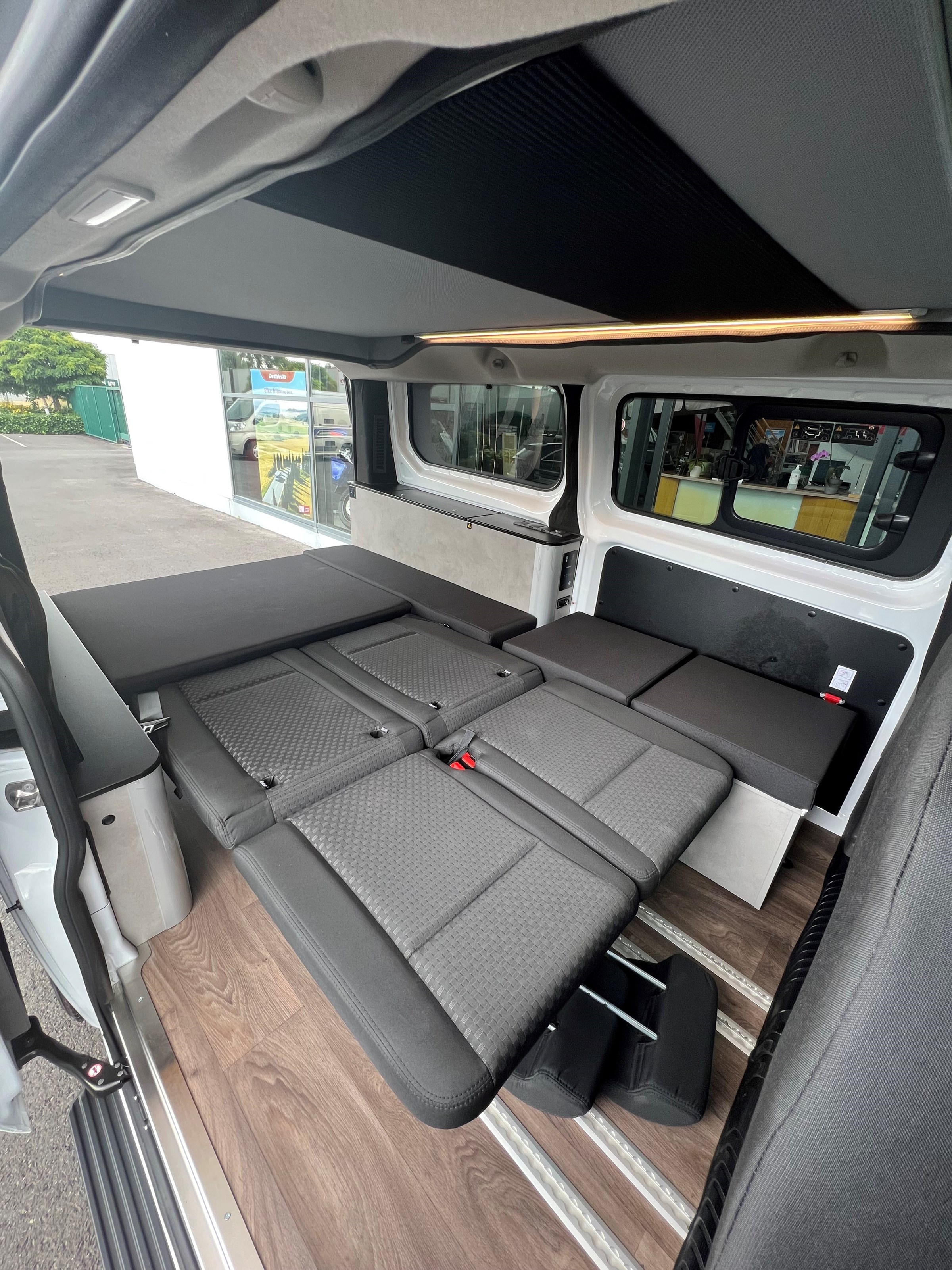 - Uitzetdak zwart met panoramafunctie en dubbel geveerd ligvlak