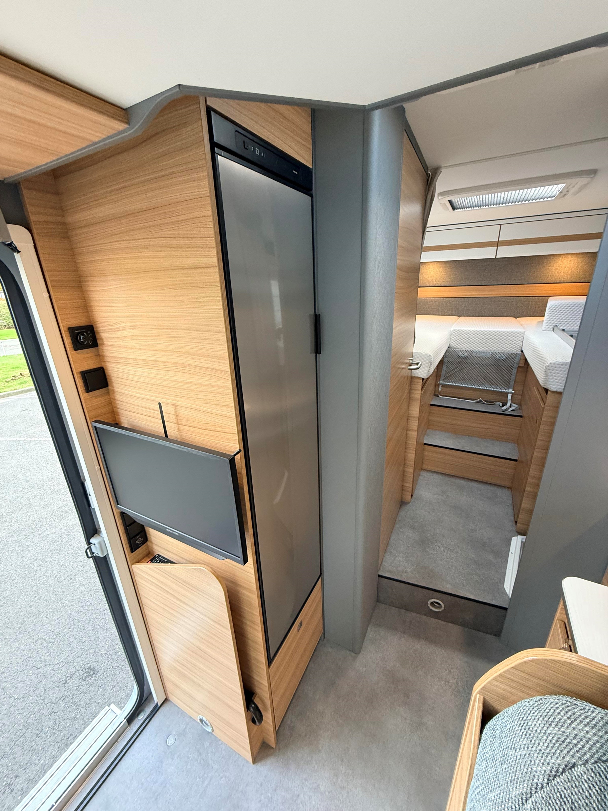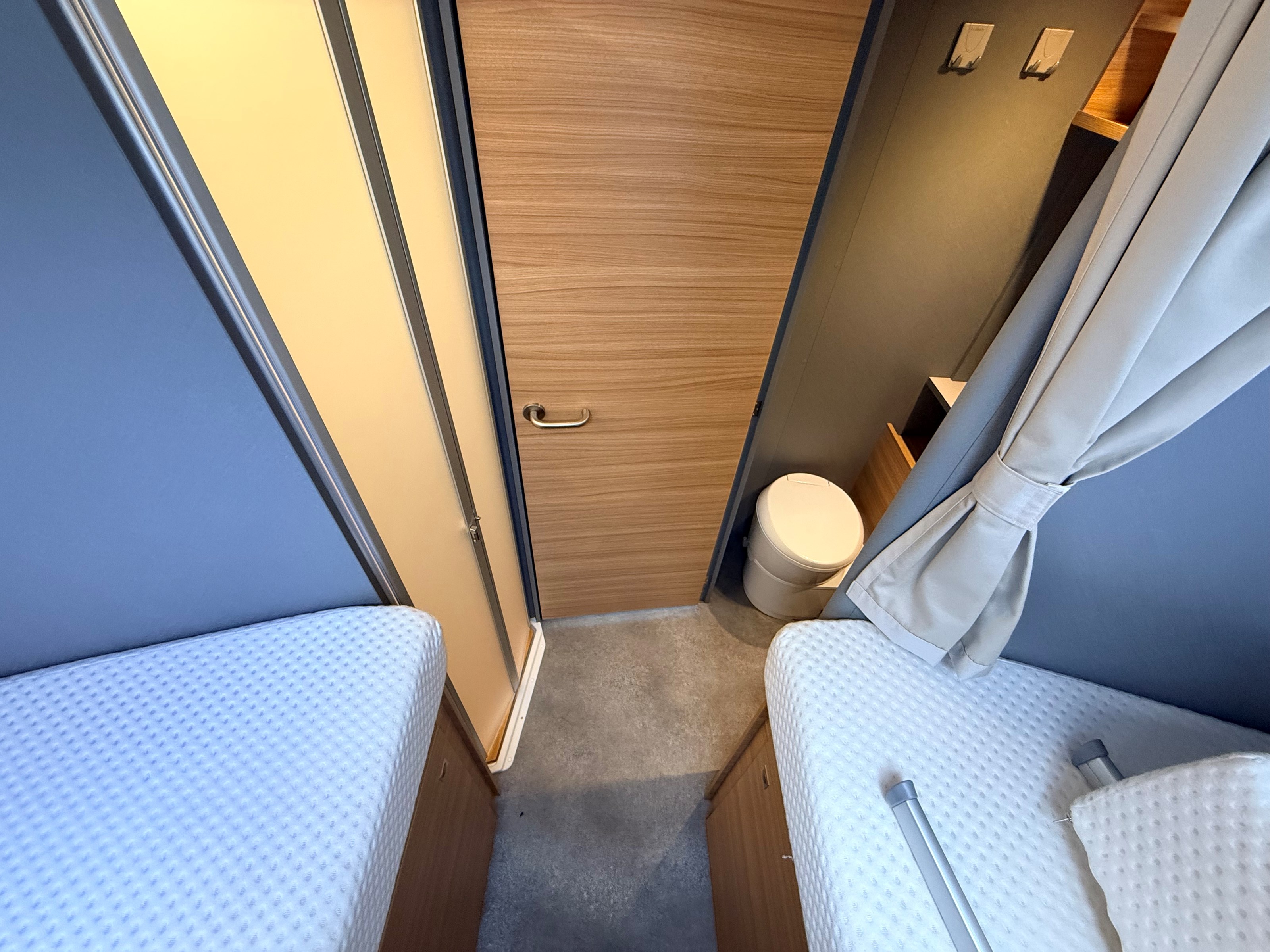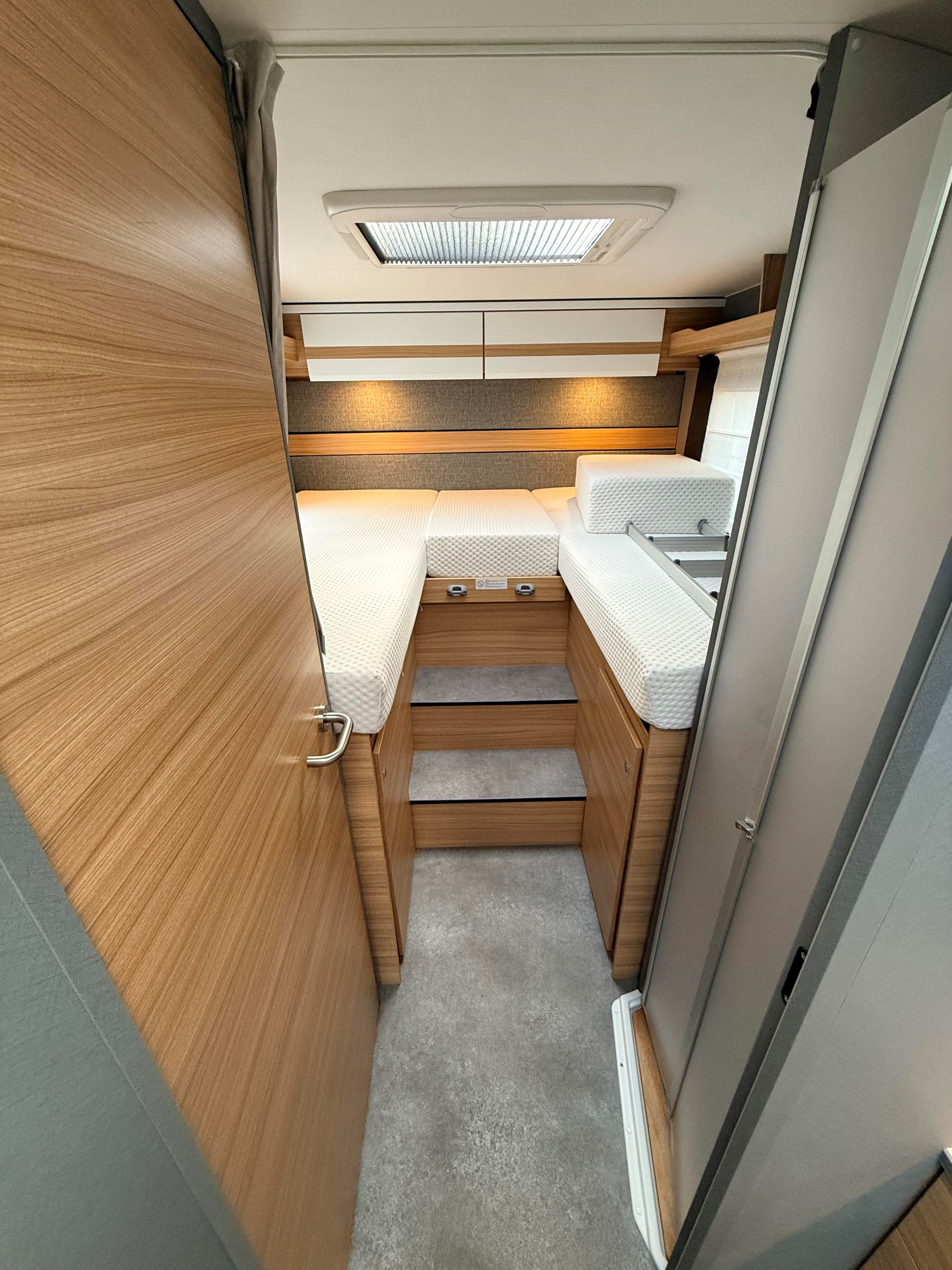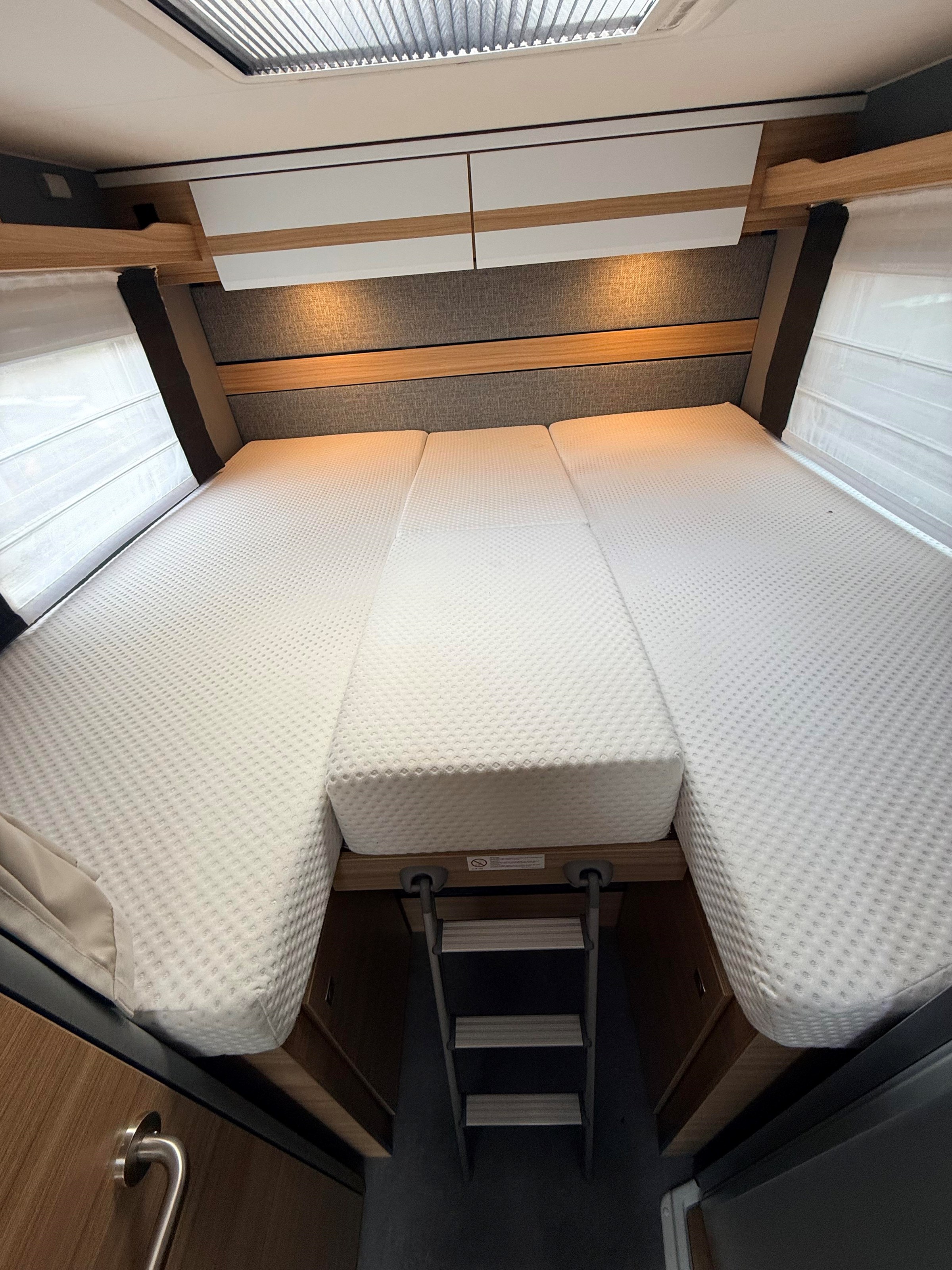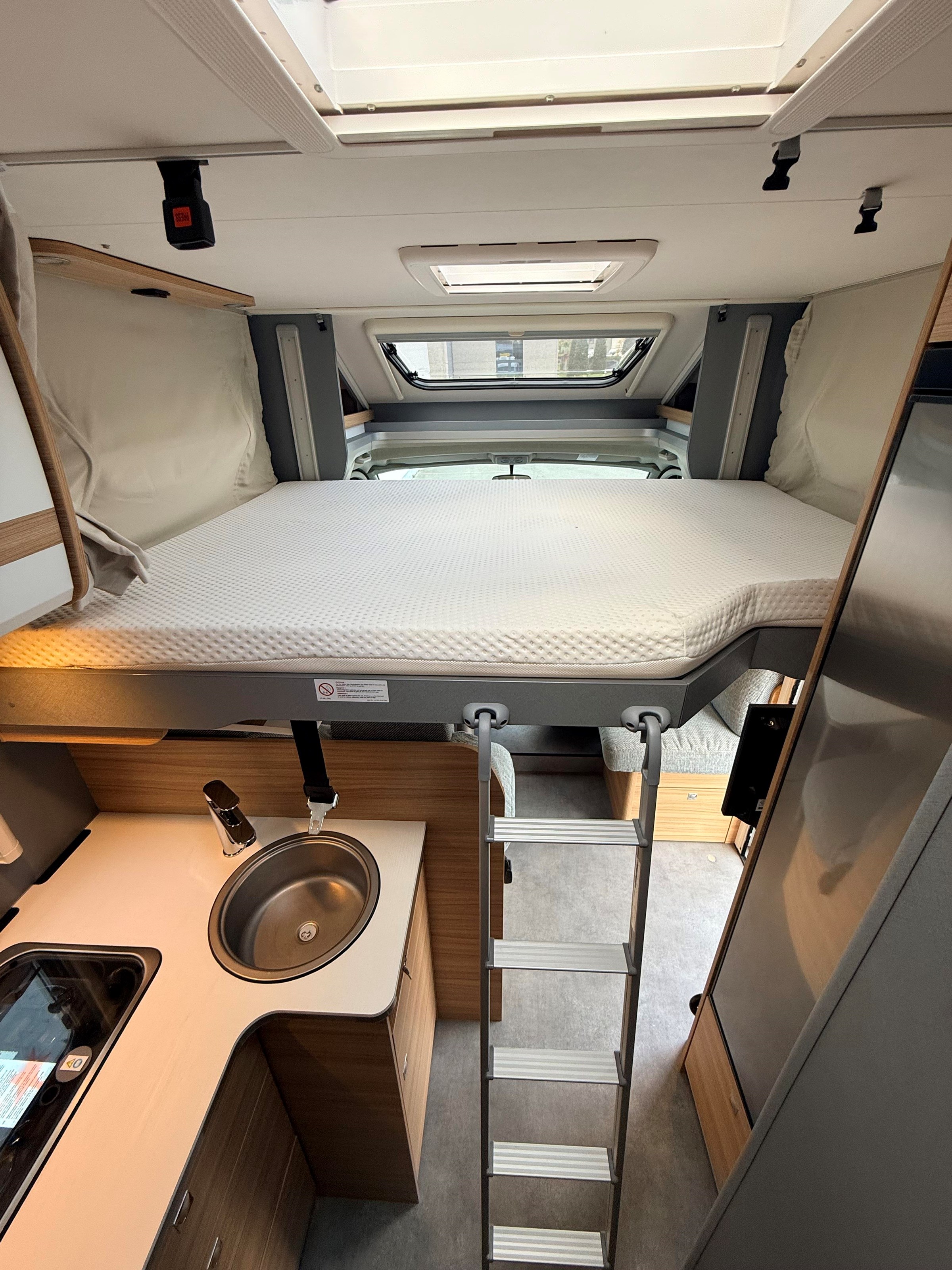 Radioantenne DAB+ (in rechter buitenspiegel geïntegreerd), Radiovoorbereiding incl. luidsprekers in de cabine, Plissé verduistering in de cabine, Hoogte- en kantelverstelling voor beide cabinestoelen, voorzien van armleuningen, Hordeur, Brede, 70 cm toegangsdeur, voorzien van een raam incl. verduistering en centrale vergrendeling (incl. cabinedeuren), Panorama dakluik 70 x 50 cm in het woongedeelte, Uitzetbaar dakraam in de cabine, Gezellige L-zitgroep met een vrijstaande tafel en 2 geïntegreerde 3 punts veiligheidsriemen, Douchevlonder, Buitenlamp 12 v